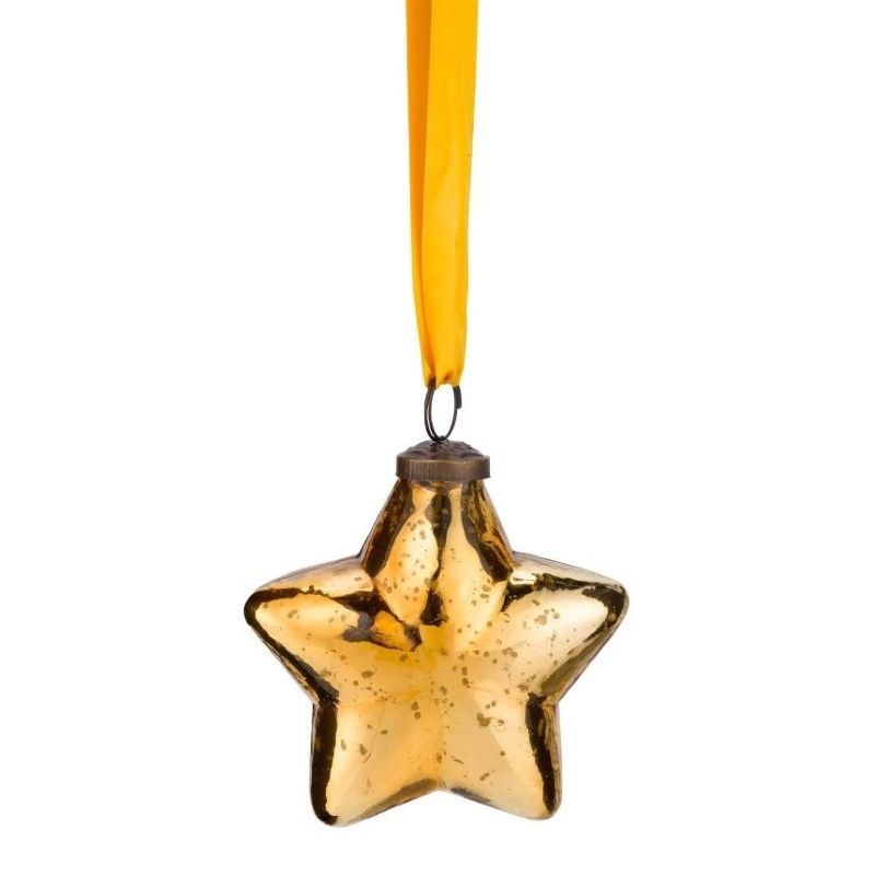 Χριστουγεννιάτικο στολίδι γυάλινο αστέρι σε χρυσό μεταλλικό χρώμα.